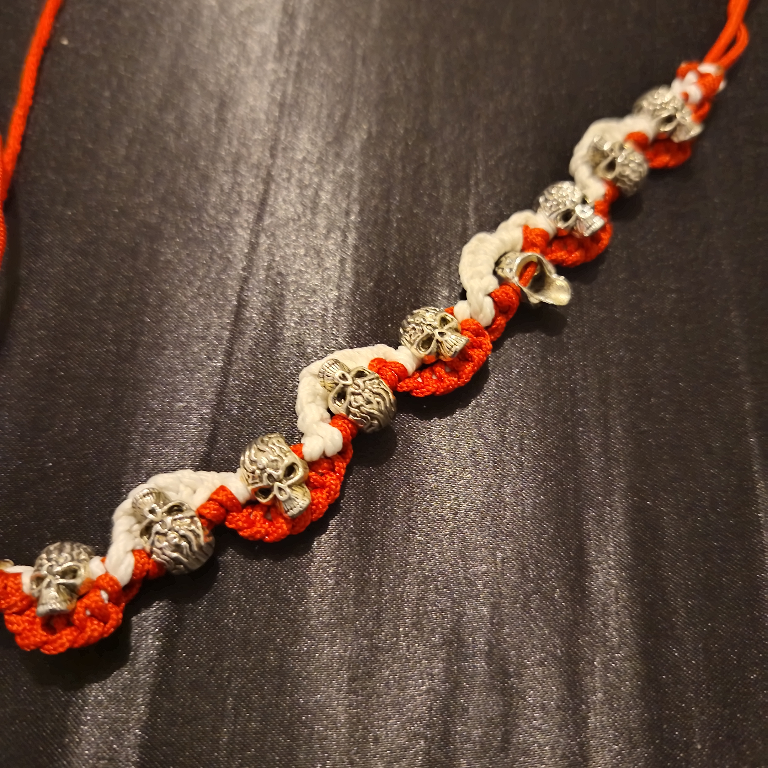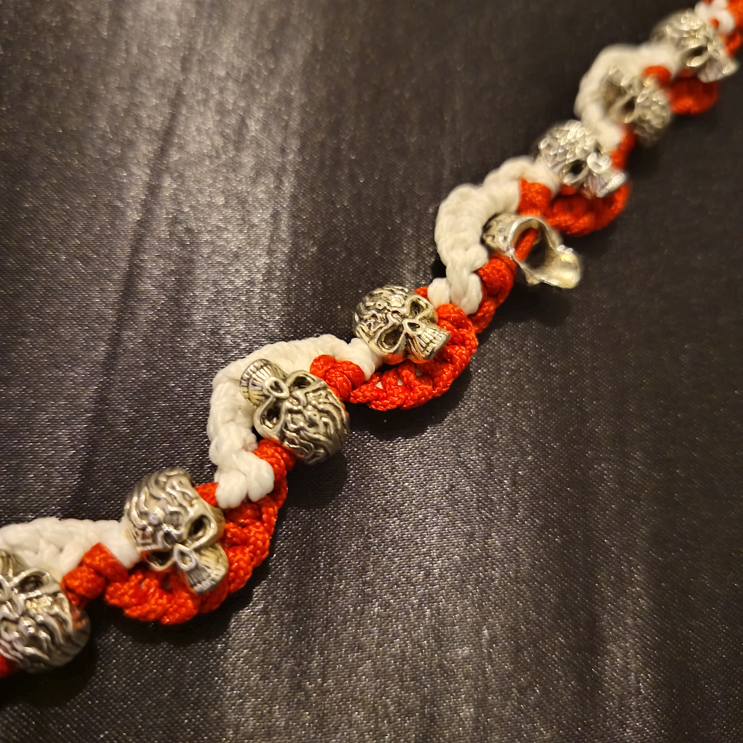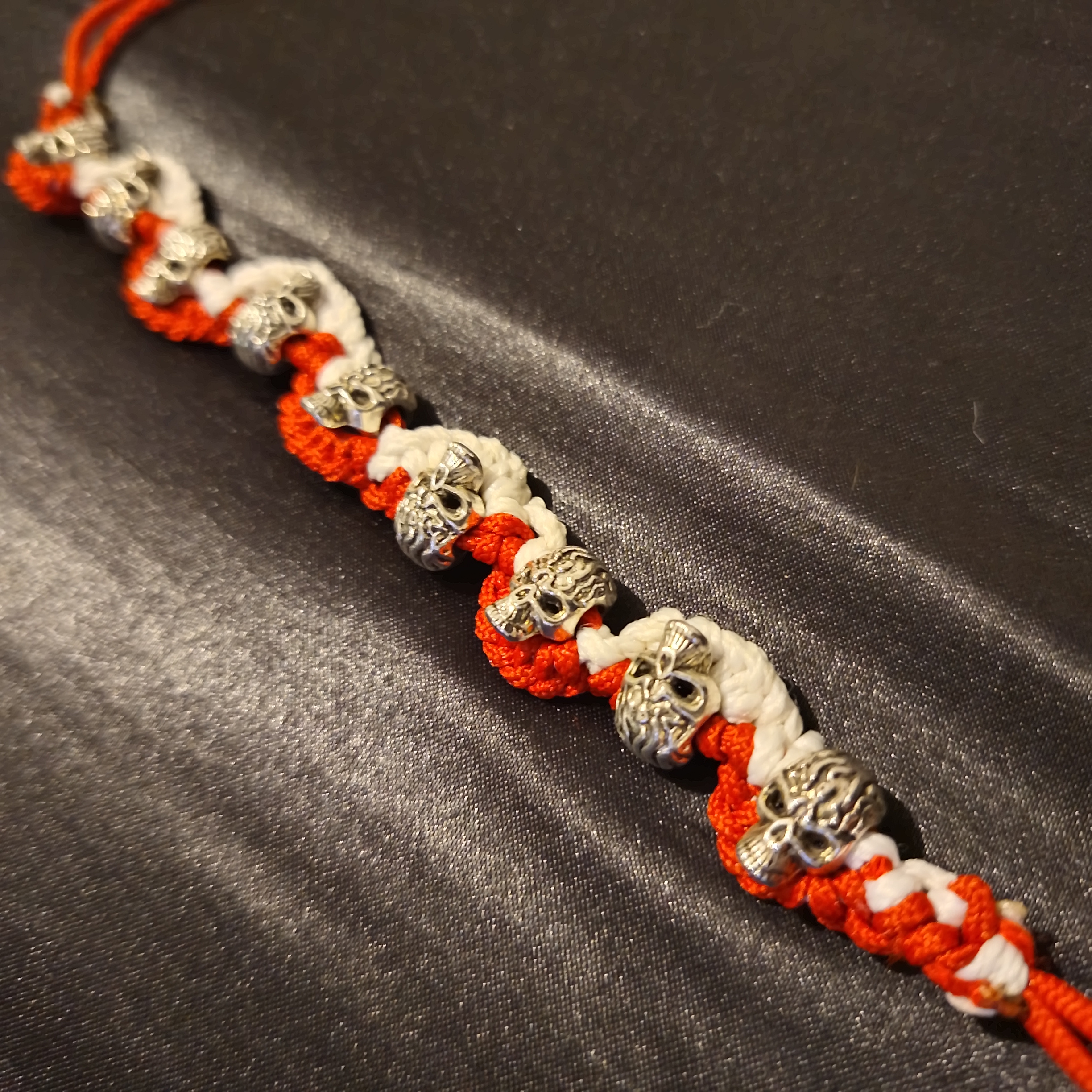 Ключови думи: гривна, черепи, ръчно изработена, червена гривна, бяла гривна, рок гривна, байкърска гривна, унисекс гривна, бижута, аксесоари